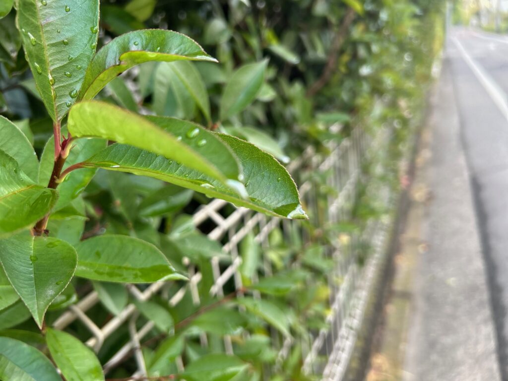 昨日降った雨が、葉っぱにたまってキラキラ光り、美しい!