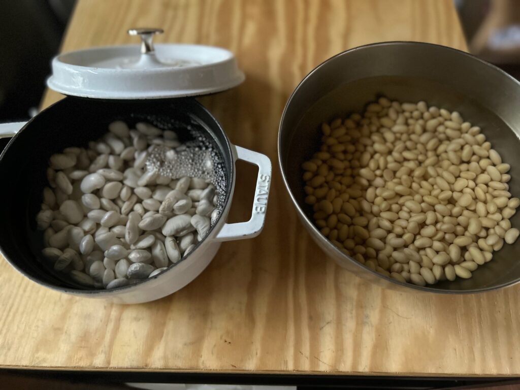 ポタージュスープのとろみを出すために炊いていた白花豆は、