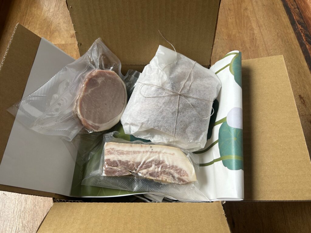 自家製のベーコンとハム、そしてパンが届いていました。
