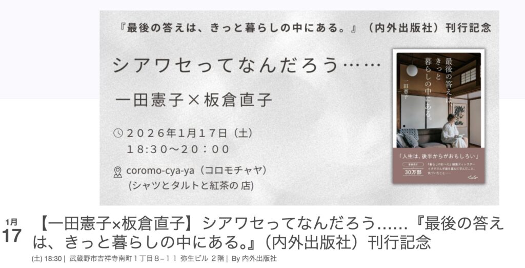「シアワセって何だろう?」 「最後の答えは、きっと暮らしの中にある」トークイベントのお知らせです。