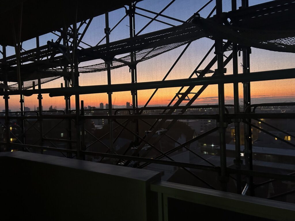 今、実家のマンションは大規模改修中で、足場とシートに覆われて