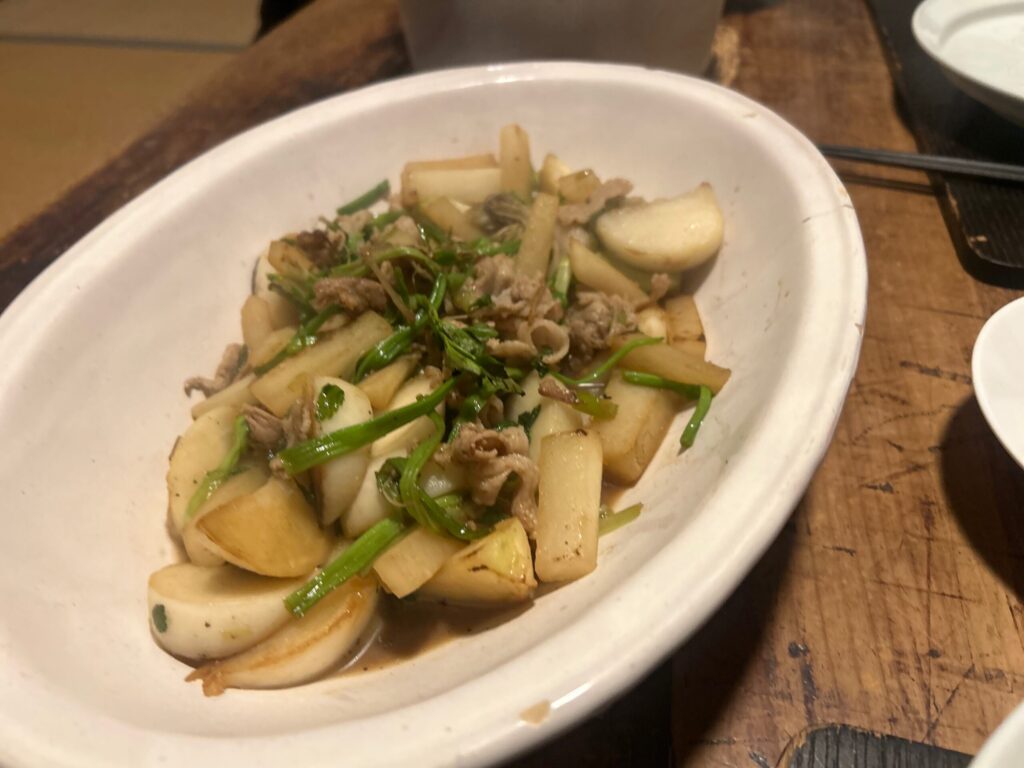 これは、出汁に豚バラ肉を少し加えて煮て、