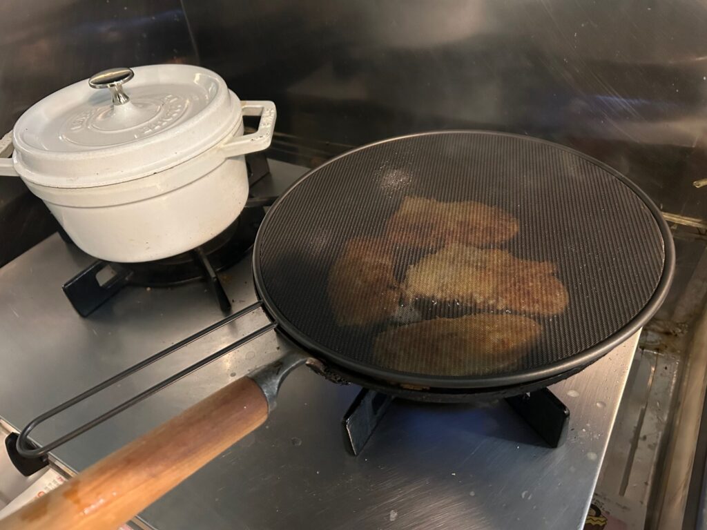 でも、油がはねまくって、ガスレンジ周りがベトベトに。