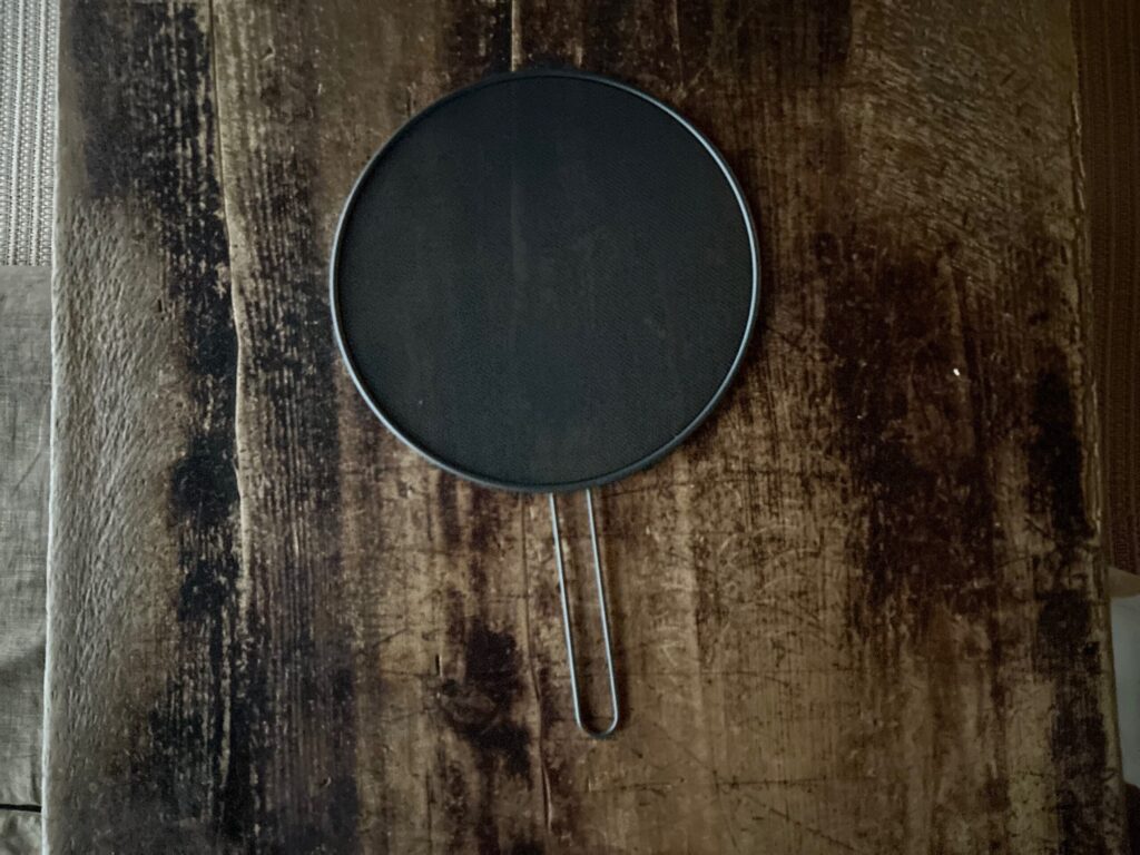 油はねなどを防ぐためのメッシュになったフタ。(残念ながら、今は欠品)