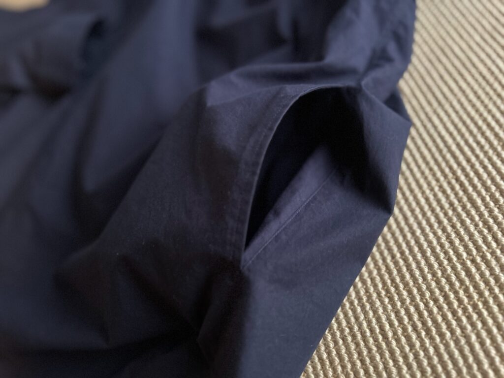 柔らかい生地だからこその落ち間で、シュッとした印象になる上、