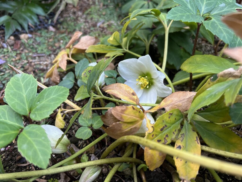冬の間、枯れてしまった葉っぱの奥から、元気にぐいっと首を持ち上げて、
