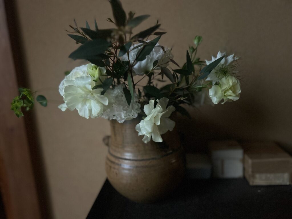 あえて渋めの焼き物に生けてみたら、