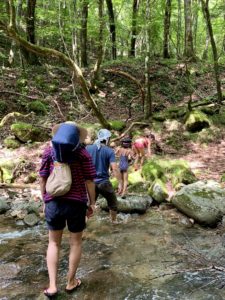 朝ごはんの後は、みんなで沢登りをしに行きました。