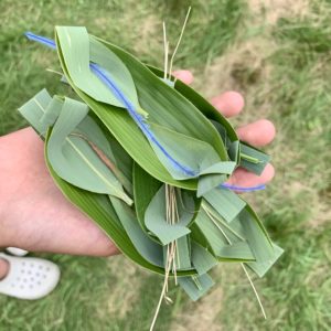 食後は、みんなで笹舟を作り、川に流しにいきました。