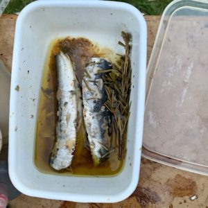 拓郎さんがハンバーグを作ってくれるというので、私は昨日のオイルサーディンを使ってパスタを作りました。