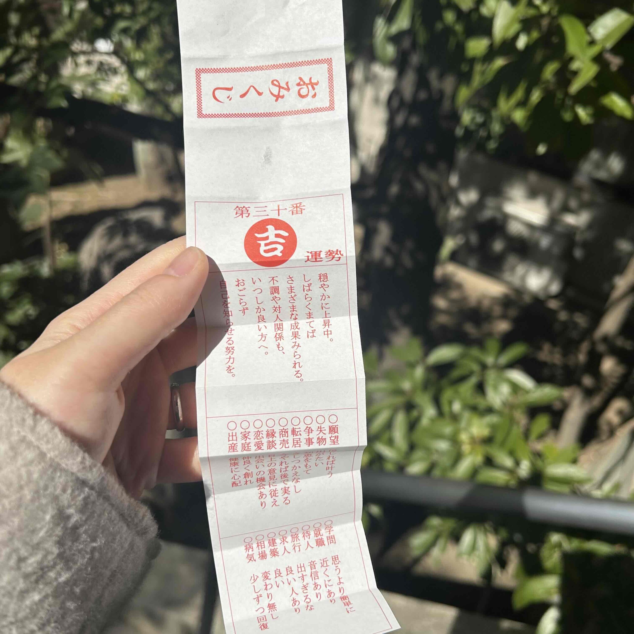 おみくじをひいたら吉! ちょっと気分がよくなりました♪