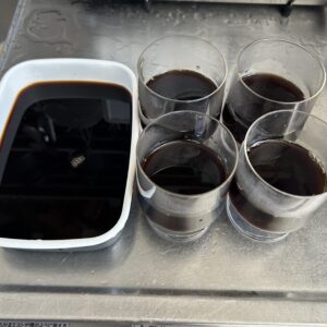 食べ終わったら、買い物をしてジェラート食べてから帰ろうと話していましたが、気づけば友達が遊びに来る時間に。ということで、家に帰ってから、急いでコーヒーゼリーを作りました。ucc drip podの炭焼珈琲のカプセルを使ってコーヒーを2杯分落とし、甜菜糖を3杯ほど入れて甘めにしました。ここに溶かしたゼラチンを入れてぐるぐる混ぜるだけ。