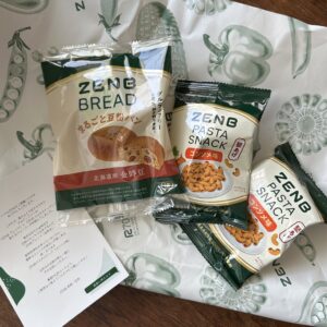 2人をお友達の家に送った後、私はようやくゆっくりひとり時間。今日届いたZENBヌードルのパスタスナックと新作の豆粉パン。