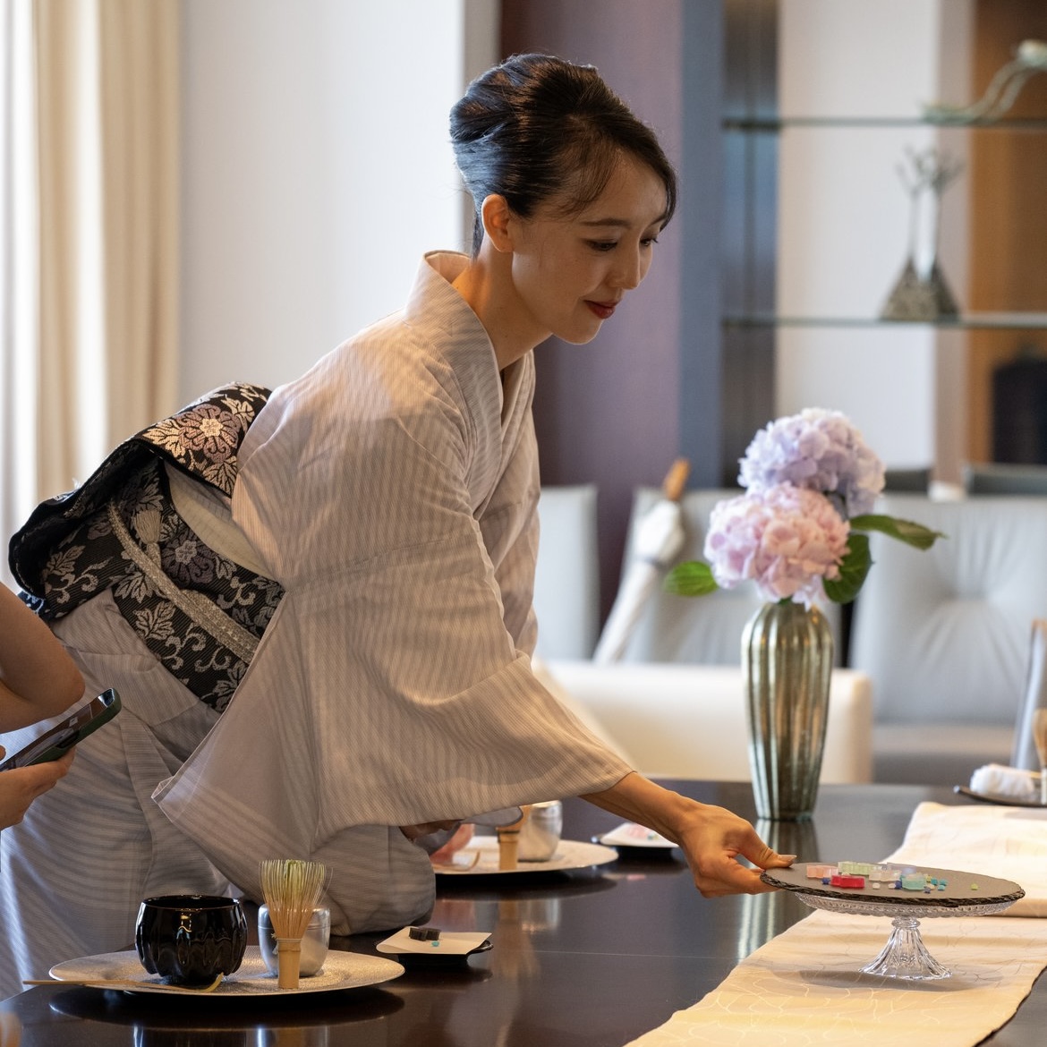 テーブル茶道家の星野容子さん。お二人とも、所作が本当に美しい。