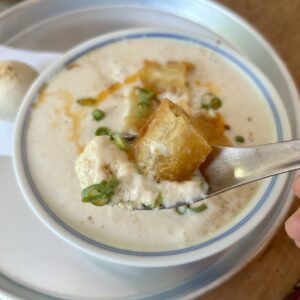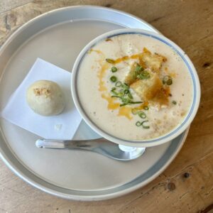 ヘルシーな豆乳スープにもっちりしたユジョウがいいアクセントです。