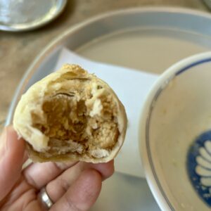 豆漿スープと一緒に食べるパンを甘いかしょっぱいか悩みましたが、やっぱり私は花生餅(ピーナッツ)の甘じょっぱを選択。