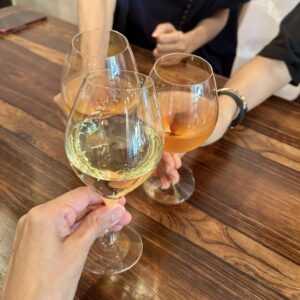 もちもちワインも。私は白、友人たちはロゼをお願いしたら、いくつか出していただき、ワインの説明もしてくださるスヌ子さん。料理もサーブも手際よくひとりで切り盛りされてました。