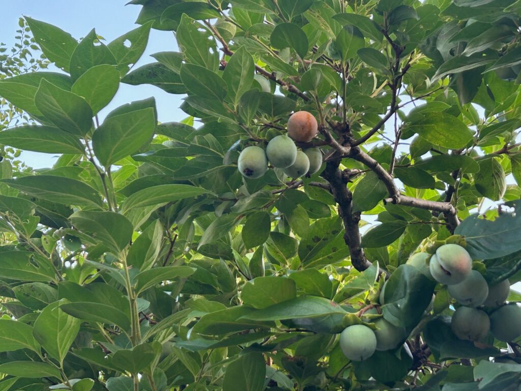 定点観測している柿の実が少しずつ色づいてきました。