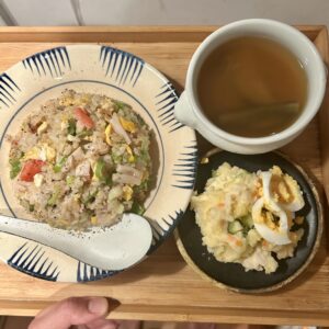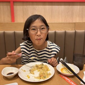 この炒飯めちゃくちゃ美味しい!とお皿を抱えて食べる娘。なんだかんだで完食✨サクッと食べてパワーチャージしました。