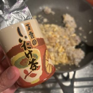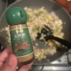 ここに五香粉を少し振り入れます。香りのアクセントが出るので、オススメです。