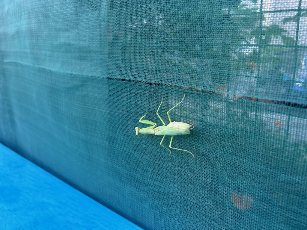 テニスコートにおでましになったカマキリ