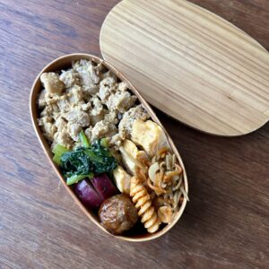 息子のお弁当も準備。鶏肉卵とじ煮、卵焼き、焼きそば、IKEAミートボール、トマトチーズペンネ、ブロッコリー。玉子が好きな息子なので、お弁当が親子丼でもおかずには甘い玉子焼きは必須と思っている私。