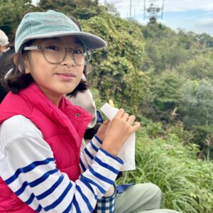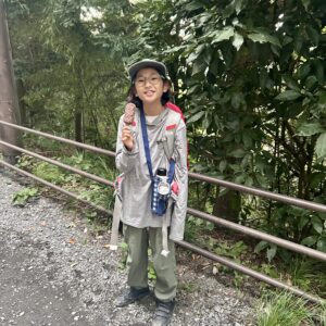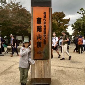 自然に触れたいというので6号コースを選択。山頂まで一時間半だよ!気合いの入った娘と記念撮影。