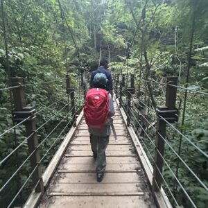長い吊り橋がありました。ちょっと怖いけど気持ちがいいね。