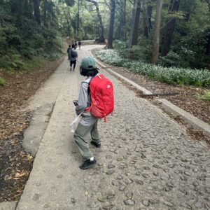 スタート時はハイキングのように緩やかなコース。少しぬかるんでましたが、ひんやりした空気の中、気持ちよく歩きました。