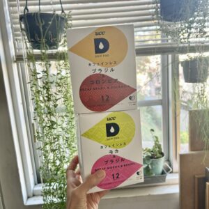 私は平日紅茶を飲むことが多いので、会社で飲むコーヒーはカフェインレスにしています。UCCドリップポッドから、新しくカフェインレスが登場したということ早速試してみることに。ブラジル&コロンビア、モカ&ブラジルの味わいの違う2種類。カフェインレスは選択肢が少ないのに、産地別に味わいが選べるなんて珍しいです。