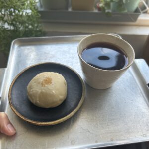 私は全粒粉とレーズン、娘はフロランタンと紅茶を選びました。カフェインレスコーヒーは朝飲んだモカ&ブラジルより深みとコクがあり、クッキーとの相性も抜群でした。