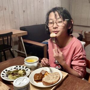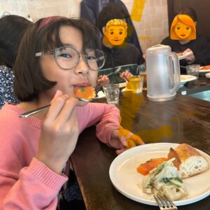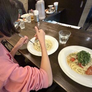 ここのパスタもっちもちだね!と娘。いつの間にかくるくるっと上手に巻いて食べられるようになってました。