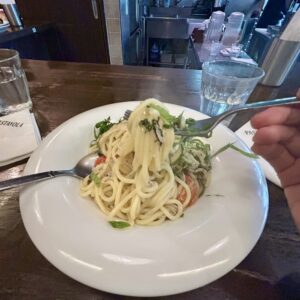 2人とも勉強を終えていざ出発。ランチの時間になったので、田町にある「PASTAVOLA 」というイタリアンに行きました。