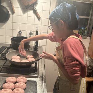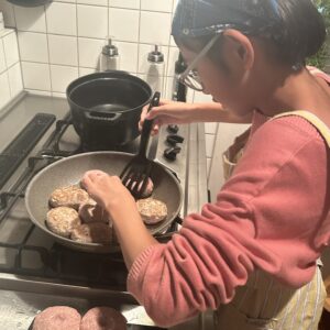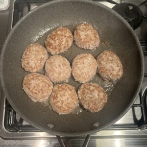 フライ返しを使ってひっくり返していきます。ハンバーグが崩れないように慎重にね。