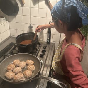 煮込みハンバーグ、柔らかくておいしい〜!大成功だったね。また作ろうね!と嬉しいお言葉。