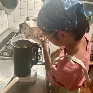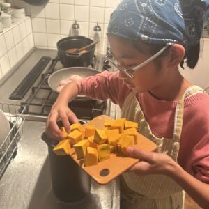 煮込んでいる間に自動調理ポットでかぼちゃのポタージュを作っていきます。