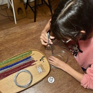 食べた後はサクッと片付けて、夜の工作タイム。今日はふたりでワイヤーアートを作りました。