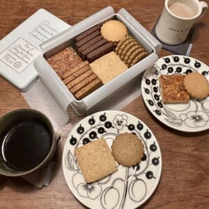 それに合わせて、今日買ってきたクッキー缶を開けました。クッキーは、全粒粉、カカオ、ハニー、紅茶、レーズン、フロランタンの6種類。「ママはどれにする?」と2人でわくわくしながら選びました。