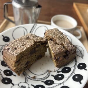 ほうじ茶スコーンは、ほろ苦いほうじ茶の中にチョコチップと大納言が入っています。