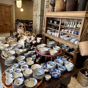 茶器や骨董品が並びます。ところどころ飾られているディスプレイが素敵です。