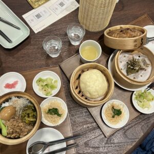 店内に入ると、円卓に通されました。ランチは、点心セットと肉燥飯(ローザオファン)を頼みました。
