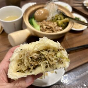続いて肉燥飯も来ました。手つきの小ぶりな土鍋に入ってきて、これも素敵な器使い。色々欲しくなりますね。