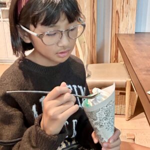 恐る恐る食べる娘。味は普通に美味しかったです。