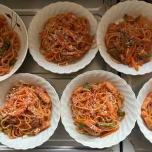 実家に着いたらすぐに買い出しをし、お昼ごはんの準備をしました。今日は娘のリクエストのナポリタン。