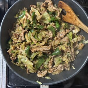 夜はダンナリクエストで中華。キャベツたっぷりの回鍋肉を作りました。