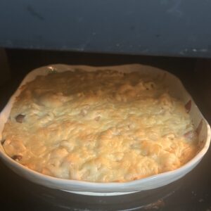 250度のオーブンで20分程度。チーズがこんがりと焼けたら出来上がり。上手に出来ました!