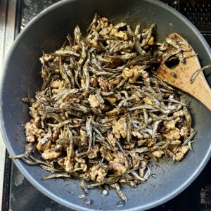 あつあつのうちに絡めていきます。