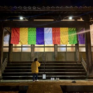 夜は美味しいお肉と卵ですき焼きにしました。おせちのなますや田作りくるみ、煮豆をつまみにしました。私は明日のために重箱に詰められるものだけ詰めて、朝のお雑煮用の出汁を準備しました。これでおせちの準備完了。除夜の鐘を鳴らしに近くのお寺へ行き、新年を迎えました。