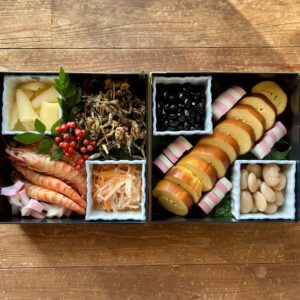 お正月の朝は少し遅めなので、ゆっくり準備を進められました。後から娘に「あれ?栗きんとんは?」と言われて、詰め忘れていたことに気づきました。笑