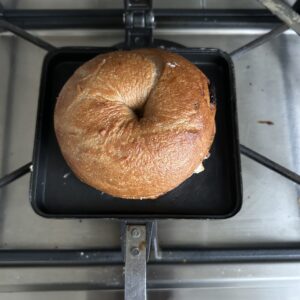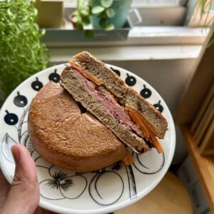 今月のメニューはご褒美感のあるローストビーフを使ったプレスベーグルサンド。